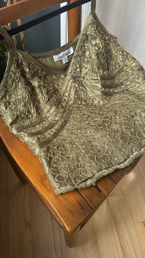 Lastly, my eye is trained and intended to find you the gems. The things you wish your mom held onto in the 70s, 80s, and 90s. That Y2K Caché beaded midi dress that was constructed to fit the female form and snatch you in all the right places.